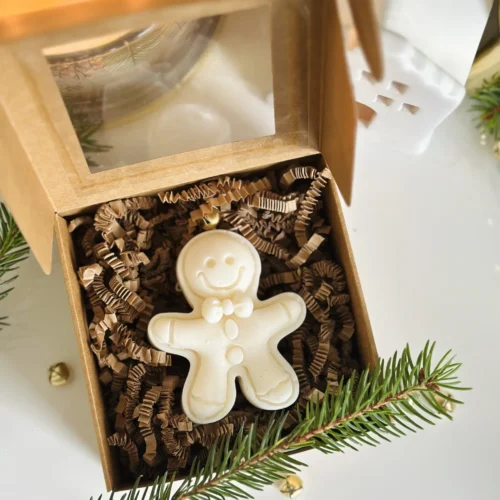 Świąteczna świeca sojowa – pierniczek w pudełku na prezent