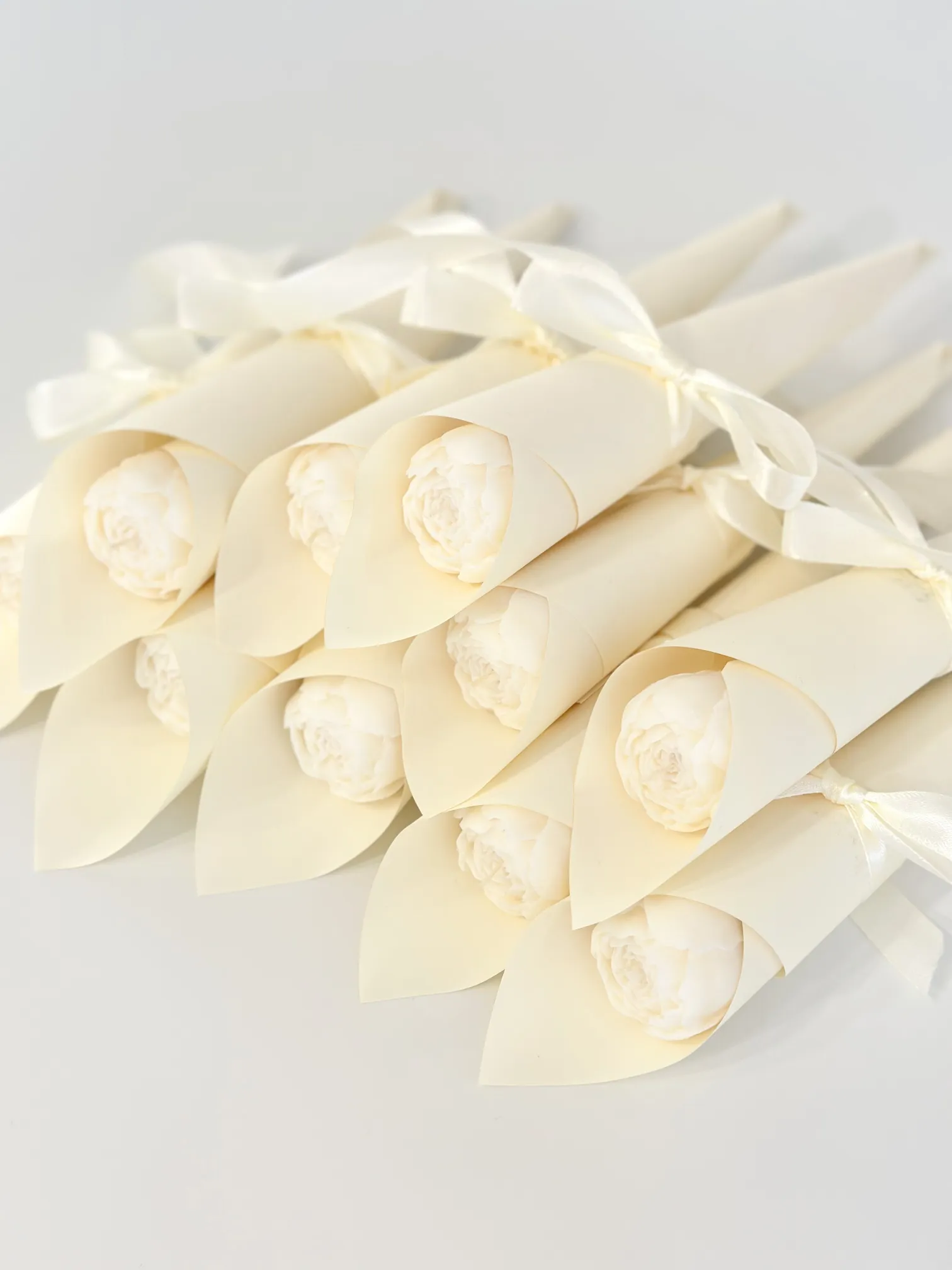 Mini piwonia może pełnić funkcję eleganckiej dekoracji stołu lub stylowego dodatku do prezentu. Oferujemy możliwość wyboru własnej kolorystyki – dopasuj odcień kwiatu oraz wstążki do motywu przewodniego wydarzenia, tworząc spójną i wyjątkową aranżację. To ręcznie wykonane, estetyczne i naturalne podziękowanie dla gości, które zachwyca prostotą i ponadczasowym wyglądem. Mini piwonia sojowa to piękny, pachnący detal, który na długo pozostanie w pamięci obdarowanych. 🌿💝