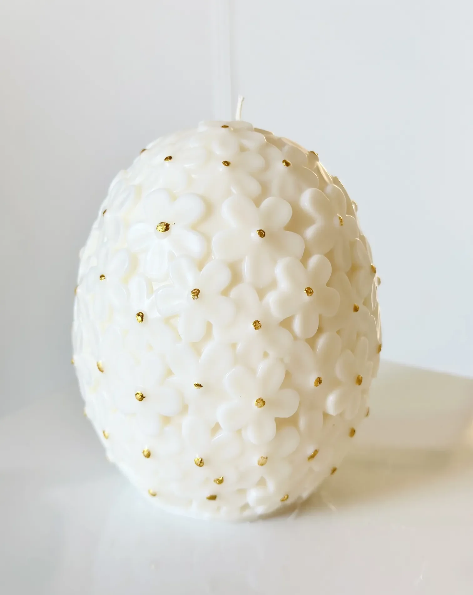 Duża świeca sojowa w kształcie pisanki z kwiatowym wzorem to wyjątkowa dekoracja na Wielkanoc, która zachwyca detalem i wiosenną lekkością. Subtelne tłoczenia w motywy kwiatowe nadają jej elegancki, dekoracyjny charakter i sprawiają, że staje się centralnym elementem świątecznej aranżacji.