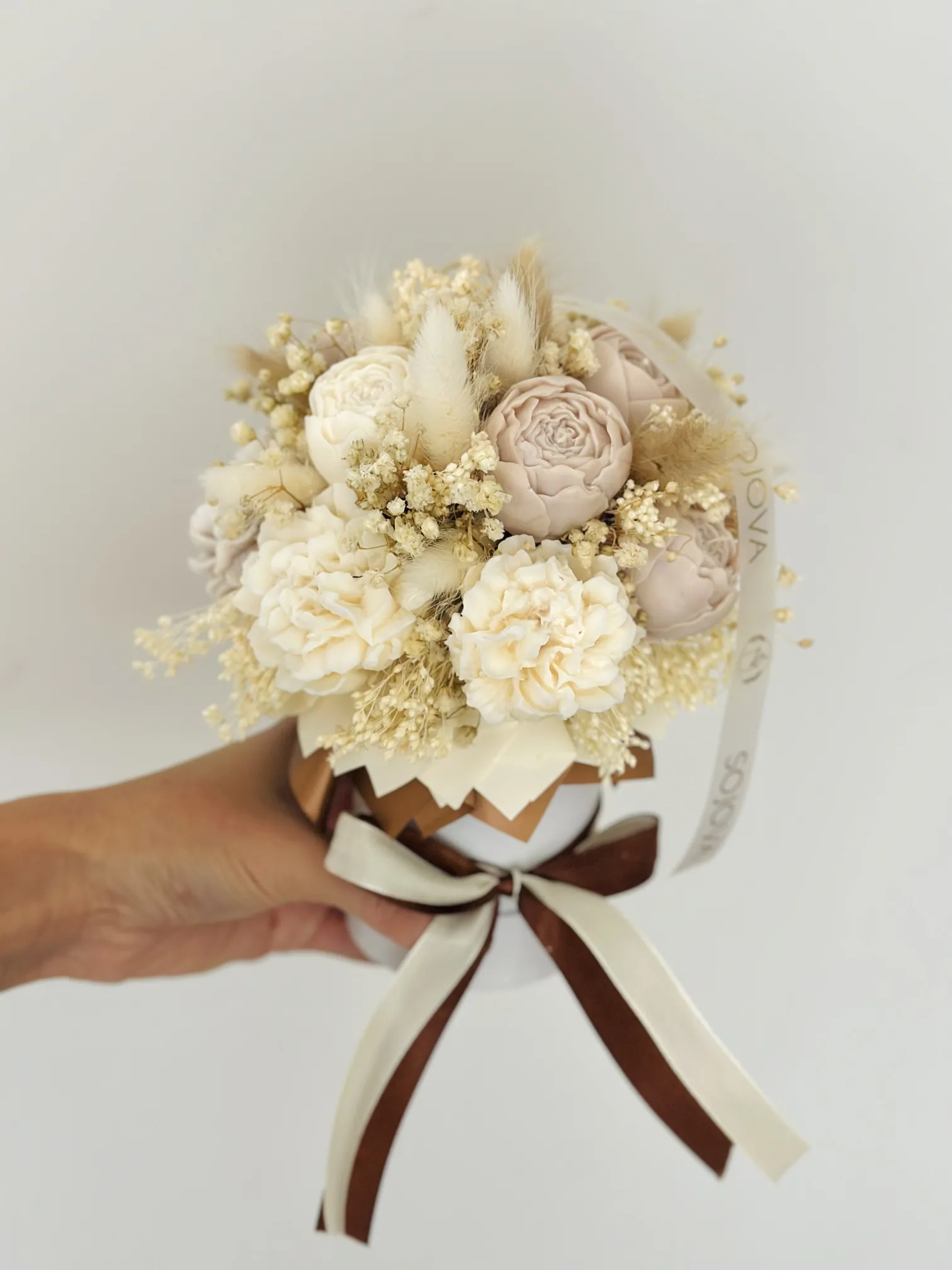 Urokliwy flowerbox w stylu boho z naturalnymi świecami sojowymi, które wprowadzają ciepłą i przytulną atmosferę. Idealny jako dekoracja wnętrza lub elegancki prezent. Wykonany z wysokiej jakości wosku sojowego, w delikatnym brązowo-kremowym odcieniu, doskonale komponuje się z naturalnymi dekoracjami i wnętrzami w stylu rustykalnym lub skandynawskim.