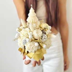 Każdy flowerbox wykonywany jest ręcznie z dbałością o każdy szczegół – z ekologicznych świec sojowych, suszonych roślin i błyszczących, świątecznych akcentów. Dzięki kompaktowemu rozmiarowi XS idealnie sprawdzi się jako subtelna ozdoba biurka, stolika nocnego, parapetu lub świątecznego prezentu dla bliskiej osoby.