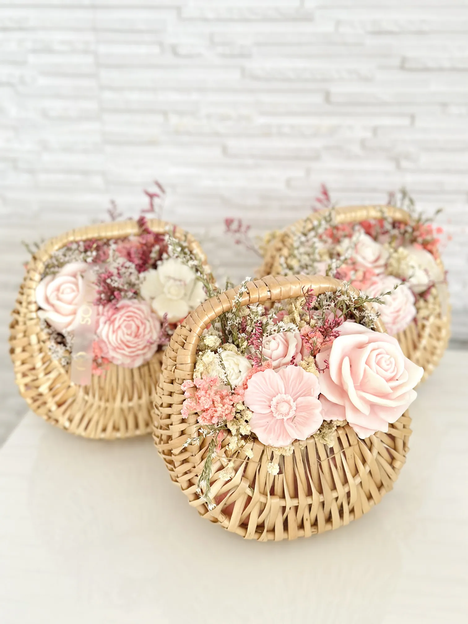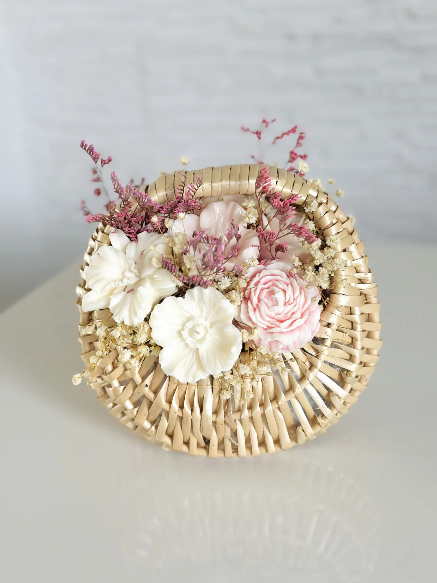 Koszyczek ze świec sojowych z suszonymi kwiatami to wyjątkowy zestaw, który łączy w sobie ekologiczne materiały i estetyczny design.