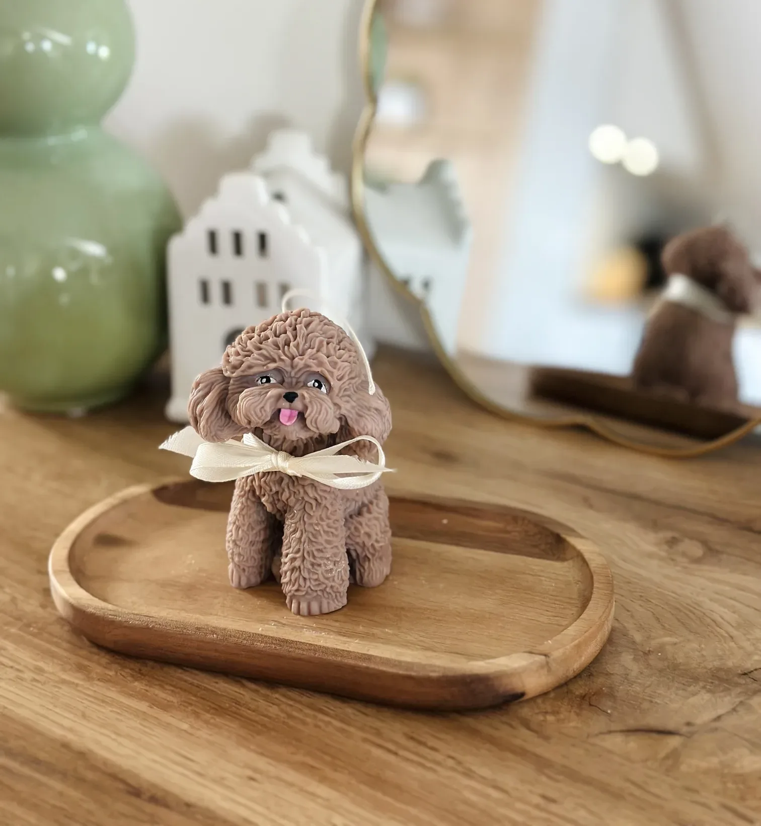 Ta świeca sojowa w kształcie pudla to wyjątkowy element dekoracyjny, który wnosi do każdego wnętrza subtelną elegancję i odrobinę radości. Wykonana z ekologicznego wosku sojowego, świeca nie tylko wygląda zachwycająco, ale także jest przyjazna dla środowiska. Świeca wykonana z dbałością o detale, która odwzorowuje naturalną sylwetkę tej rasy, stanie się unikalnym akcentem w Twoim domu, tworząc atmosferę ciepła i przytulności.