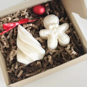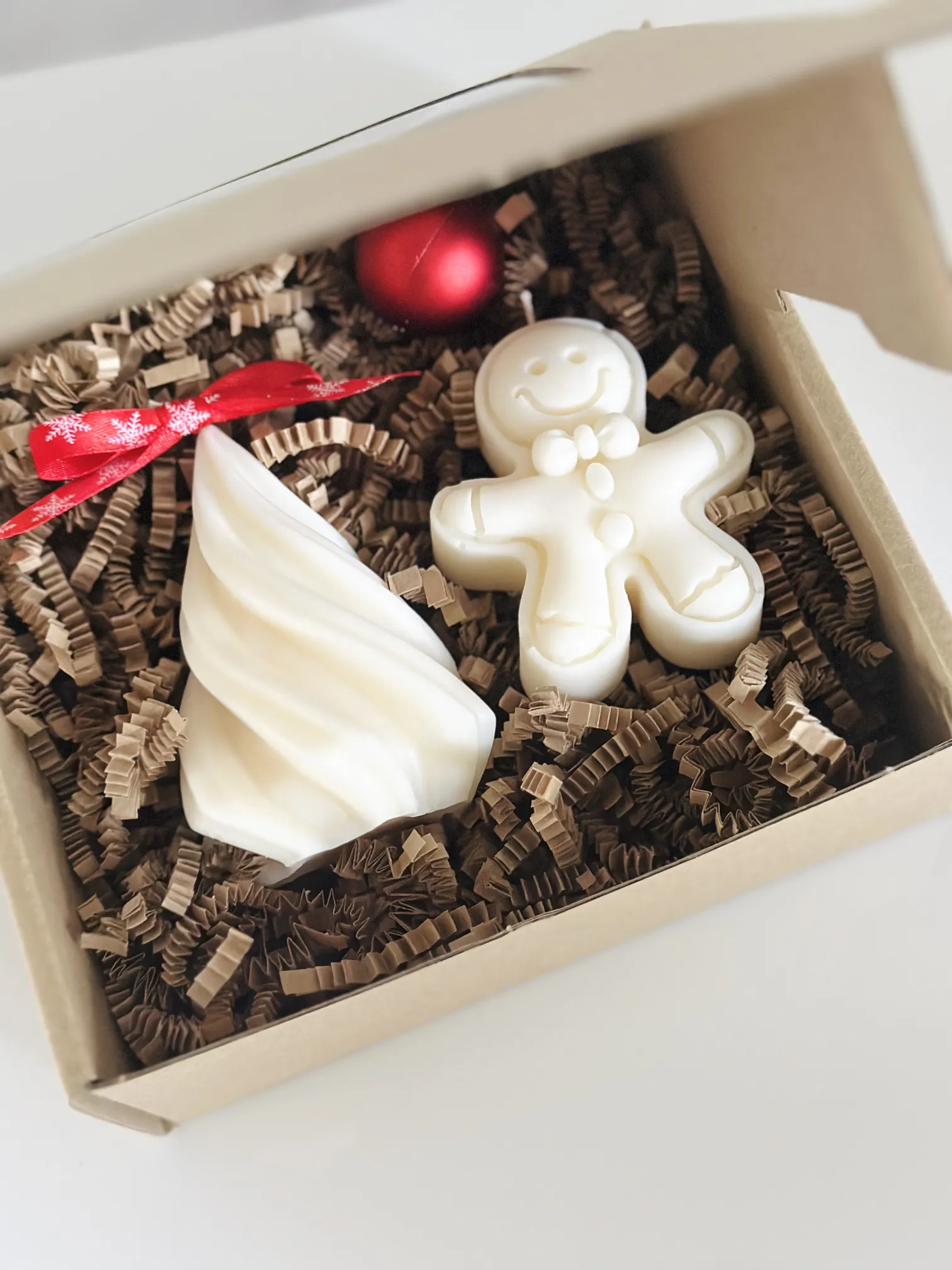 Świąteczny zestaw 2 świec sojowych w pudełku – ciastek i choinka S