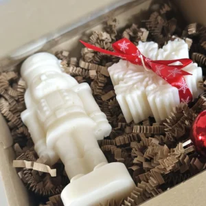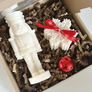 Świąteczny zestaw 2 świec sojowych w pudełku – dziadek do orzechów i śnieżynka