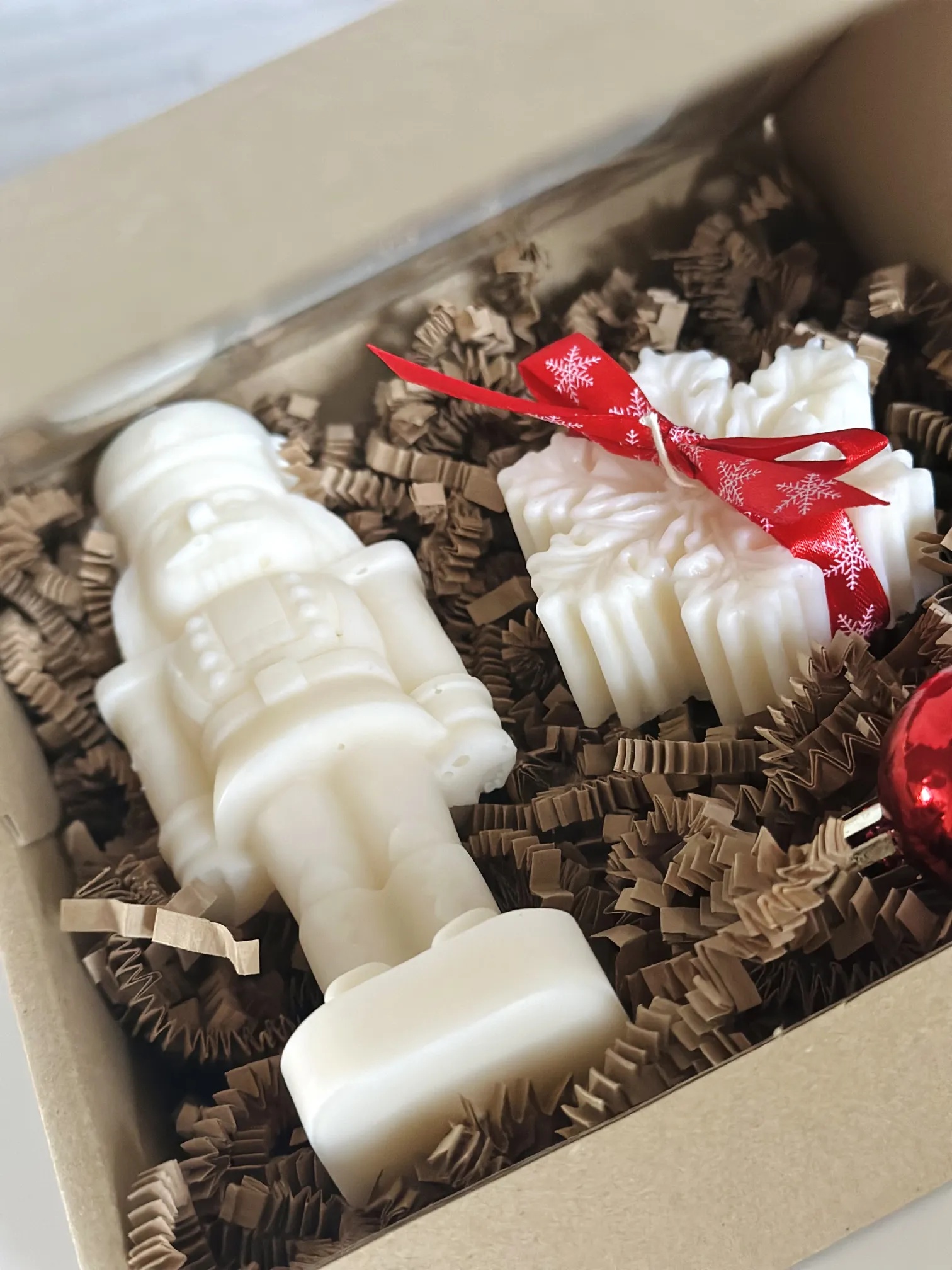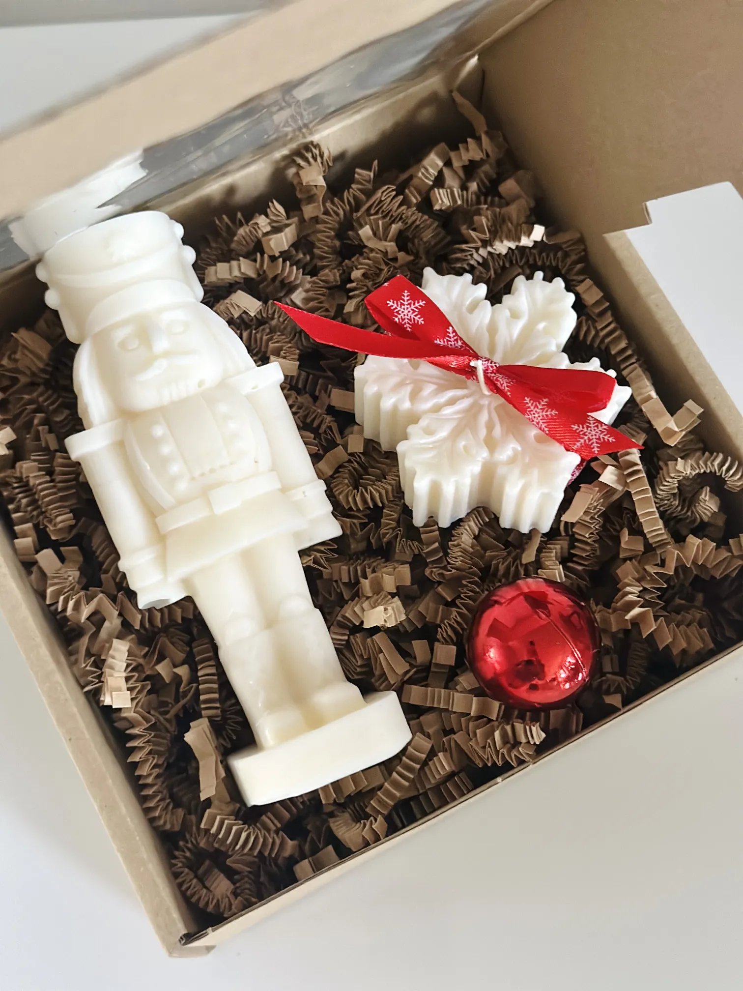 Świąteczny zestaw 2 świec sojowych w pudełku - dziadek do orzechów i śnieżynka - obrazek 2
