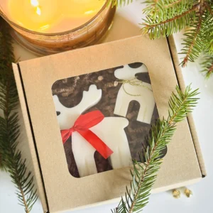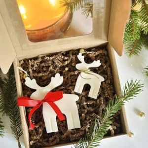 Wprowadź magię Świąt do każdego wnętrza dzięki uroczemu zestawowi dwóch świec sojowych w kształcie reniferów. Zestaw zawiera dwie świece o różnych rozmiarach – S i L, które pięknie dopełnią świąteczną dekorację oraz stworzą ciepłą atmosferę w domu, biurze czy sklepie.