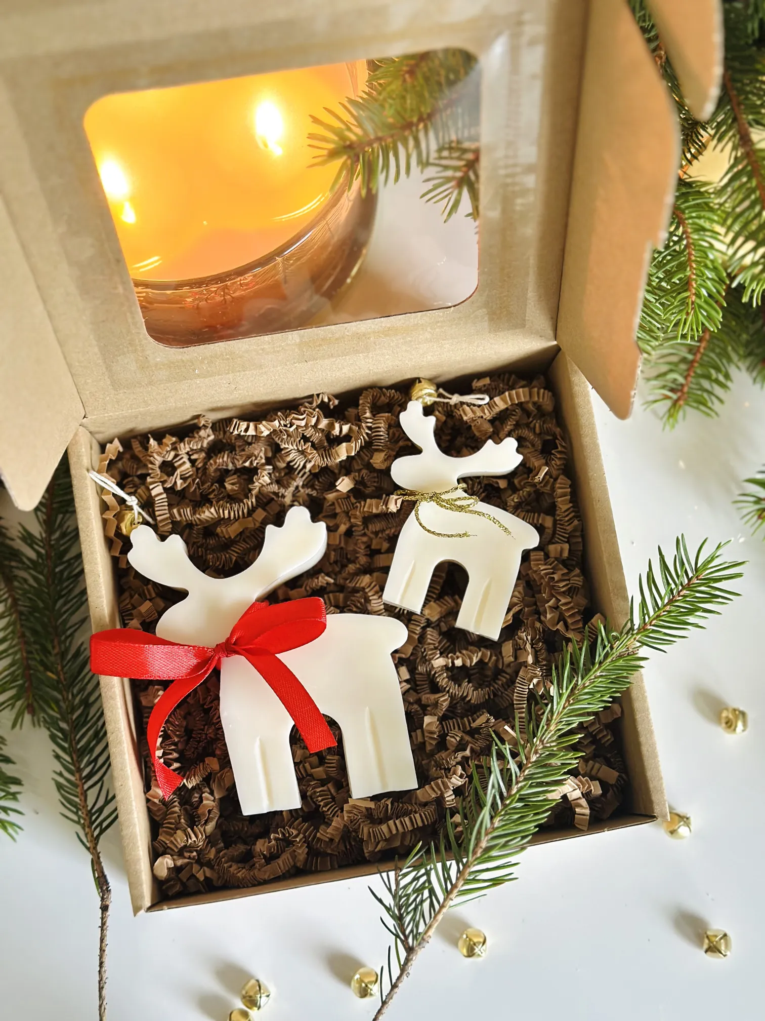 🦌 Świąteczny Zestaw 2 Świec Sojowych „Renifer” – Rozmiary S i L