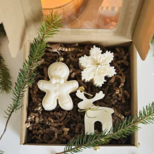 Wprowadź magię świąt do swojego domu lub podaruj bliskim wyjątkowy prezent dzięki naszemu zestawowi trzech świec sojowych o świątecznych kształtach i zapachach. Idealny upominek, który ociepli każdy zimowy wieczór.