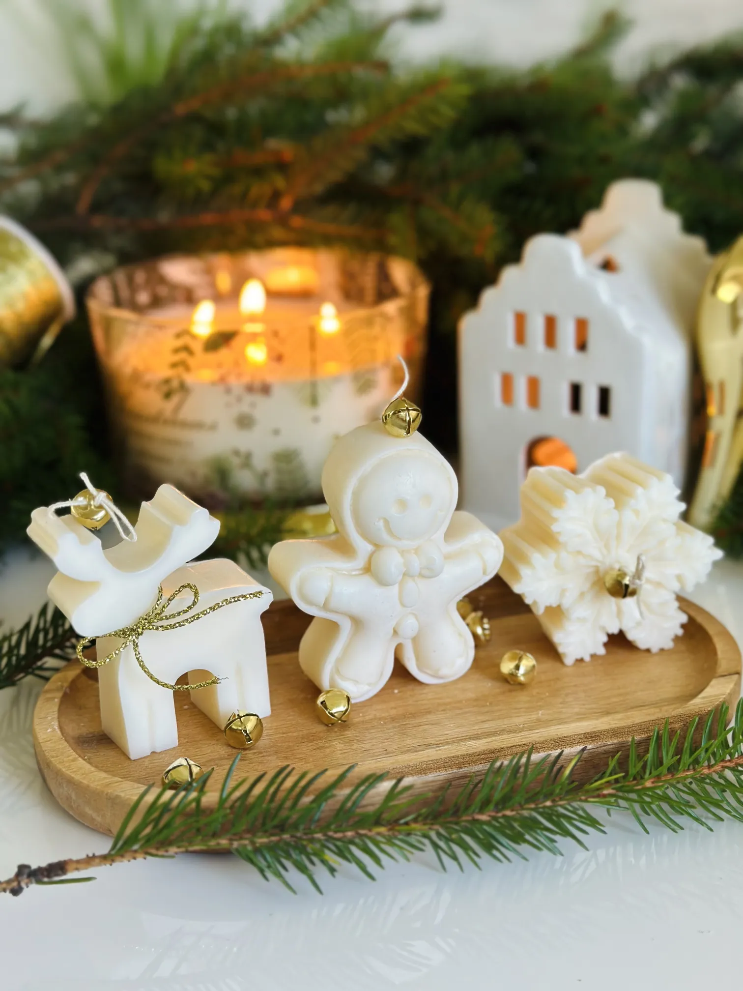 🎄 Świąteczny Zestaw 3 Świec Sojowych – Piernik, Renifer S, Śnieżynka