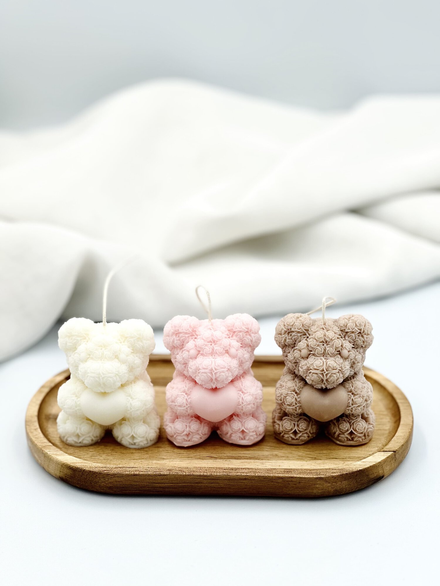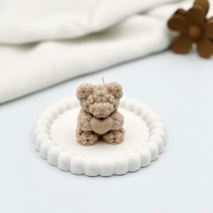 Świeca sojowa w kształcie misia to wyjątkowa dekoracja, której detale są starannie wykonane z małych róż. Miś trzyma serce, co dodaje całości romantycznego i ciepłego charakteru. Ta unikalna świeca tworzy przytulną atmosferę, będąc doskonałym pomysłem na prezent pełen uroku i delikatności.