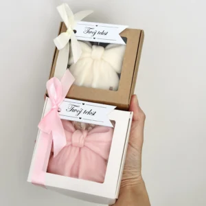 Stylowa świeca sojowa w kształcie kokardy to uroczy i praktyczny sposób, aby podziękować gościom za udział w Twojej uroczystości. Wykonana z naturalnego wosku sojowego, łączy elegancki design z subtelnym, dekoracyjnym charakterem.