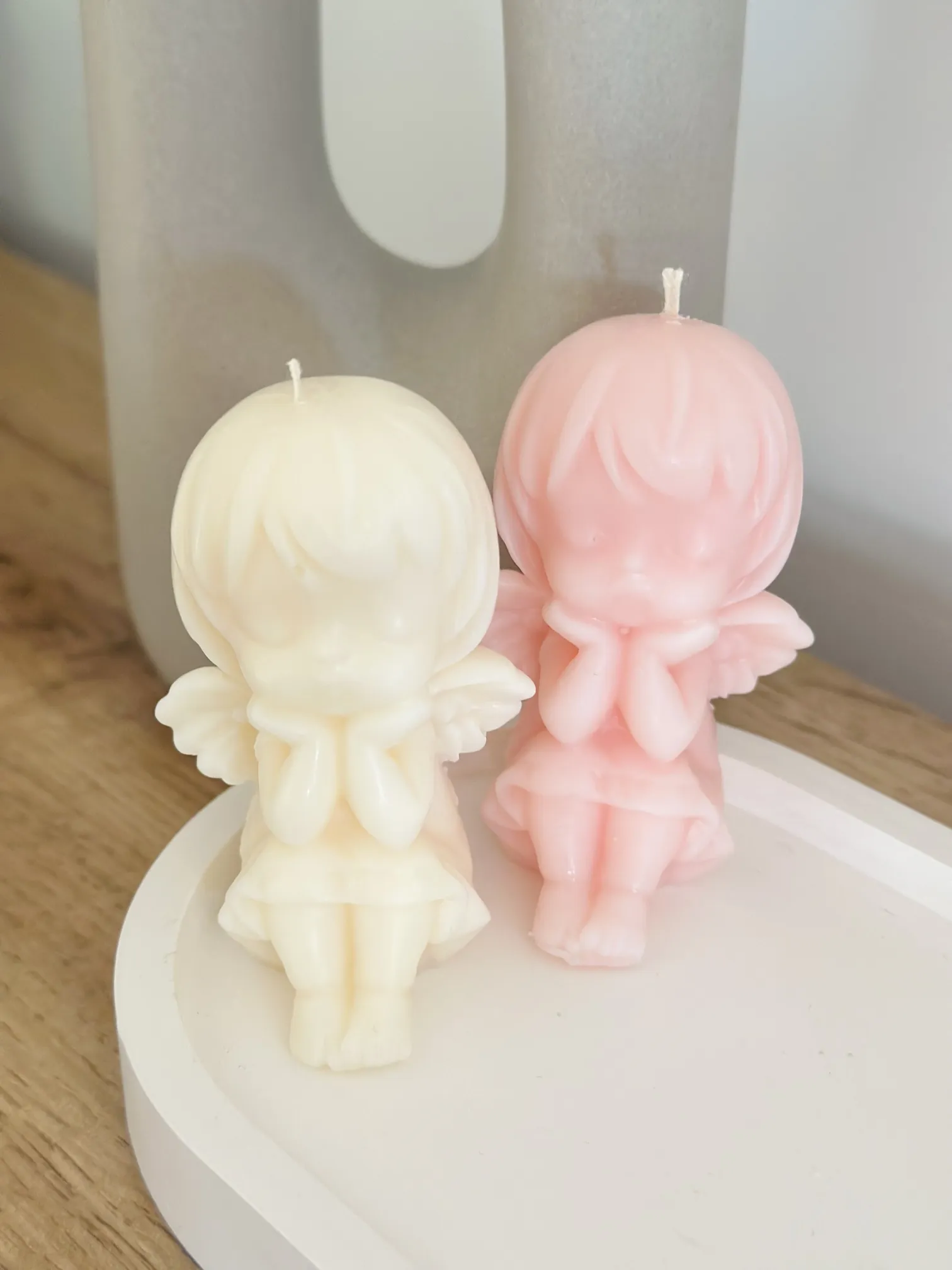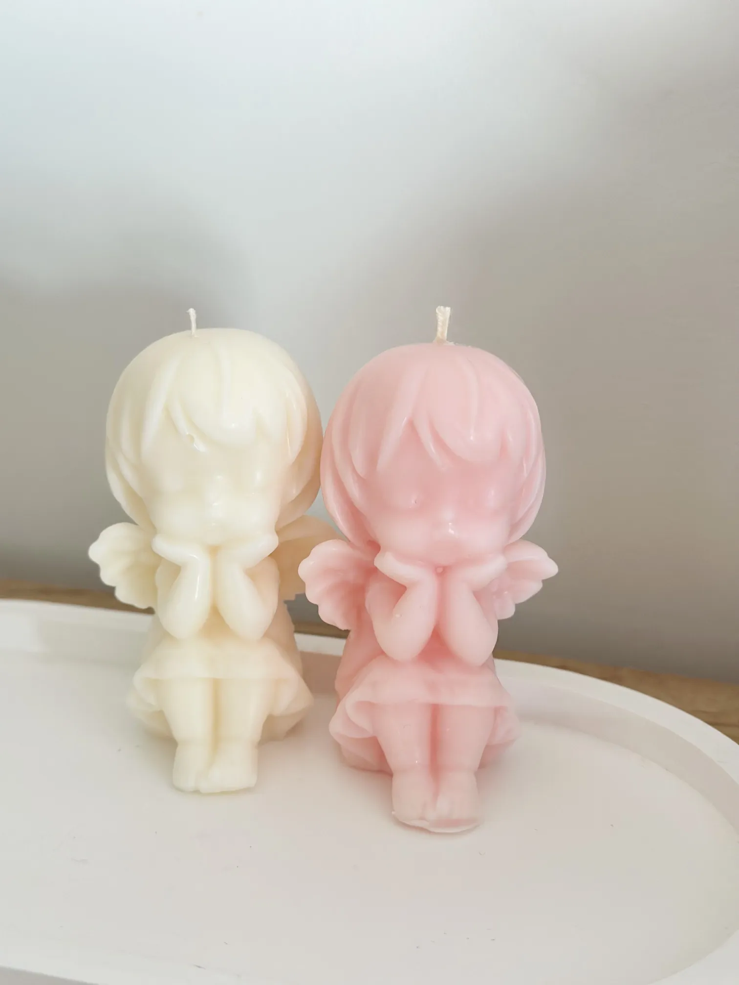Urocza świeca sojowa w kształcie dziewczynki ze skrzydłami wykonana z naturalnego wosku sojowego. Delikatna figurka z anielskimi skrzydłami nadaje świecy subtelny i symboliczny charakter, dzięki czemu doskonale sprawdzi się jako dekoracja wnętrza lub wyjątkowa pamiątka.