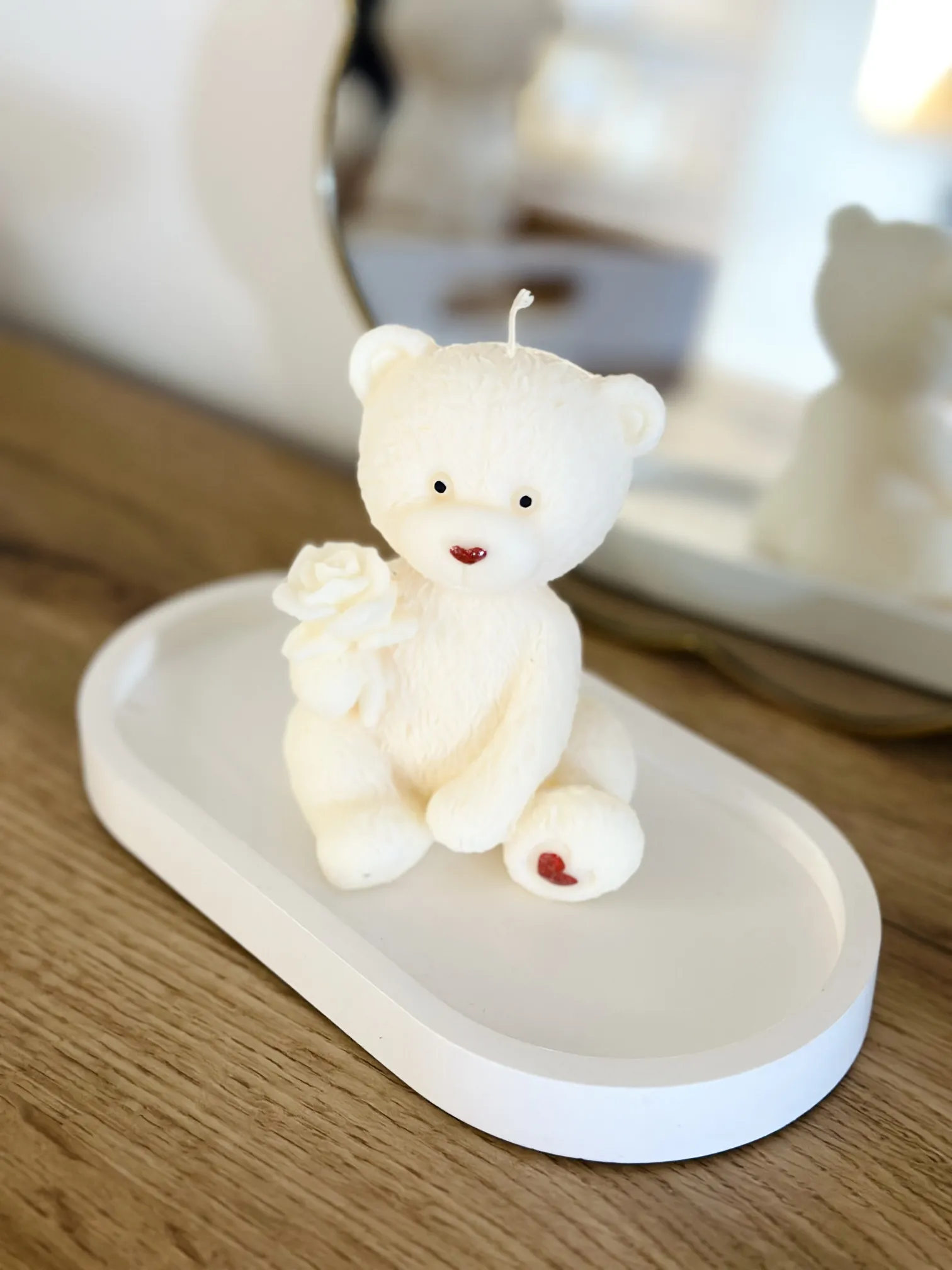 Świeca sojowa walentynkowa, miś z różą
