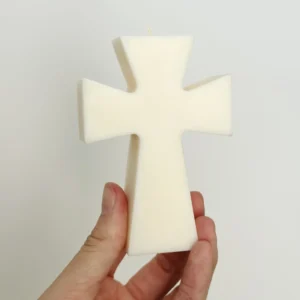 Dekoracyjna świeca sojowa w kształcie krzyża wykonana z naturalnego wosku sojowego to wyjątkowy element o symbolicznym i eleganckim charakterze. Starannie wykonany kształt krzyża sprawia, że świeca doskonale sprawdzi się jako subtelna dekoracja wnętrza oraz pamiątka ważnych uroczystości religijnych.