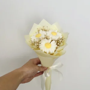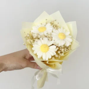 To idealny pomysł na prezent – zamiast klasycznych kwiatów podaruj bukiet, który zostanie na dłużej. Naturalny wosk sojowy, subtelny wygląd i wiosenny klimat sprawiają, że bukiet stokrotek zachwyca od pierwszego spojrzenia.